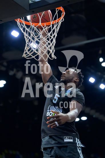 2882280 Amin Adamu (5 London Lions) durante o aquecimento antes do jogo da BKT EuroCup entre London Lions e Lietkabelis Panev?zys na Copper Box Arena em Londres, Inglaterra. (Foto de Keeran Marquis/Sports Press Photo/SPP) (Keeran Marquis/SPP)