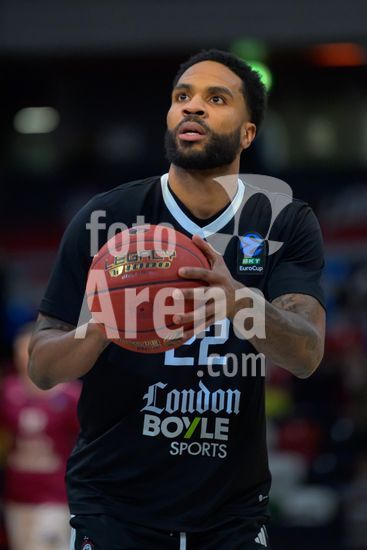 2882279 Tarik Phillip (22 London Lions) durante o aquecimento pre-jogo da partida da BKT EuroCup entre London Lions e Lietkabelis Panev?zys na Copper Box Arena em Londres, Inglaterra. (Foto de Keeran Marquis/Sports Press Photo/SPP) (Keeran Marquis/SPP)