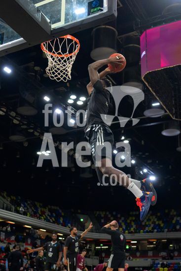 2882259 Amin Adamu (5 London Lions) durante o aquecimento antes do jogo da BKT EuroCup entre London Lions e Lietkabelis Panev?zys na Copper Box Arena em Londres, Inglaterra. (Foto de Keeran Marquis/Sports Press Photo/SPP) (Keeran Marquis/SPP)