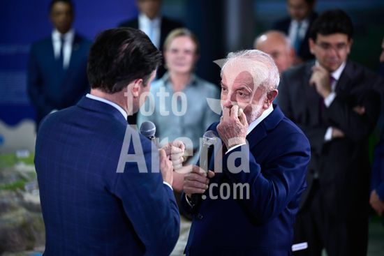 2860473 Foto, Presidente Lula durante inauguração. Nesta quinta (18) o Presidente Lula inaugura a maquete da transposição do Rio São Francisco. A inauguração teve a participação de Hugo Motta, Presidente da Câmara dos Deputados.