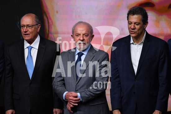 2820841 O Presidente da República, Luiz Inácio Lula da Silva (PT), participa da cerimônia de anúncio do novo modelo de crédito imobiliário, nesta sexta feira (10), no Centro de Convenções Rebouças, em São Paulo. Na foto Geraldo Alckmin (PSB), Vice Presidente e Ministro do Desenvolvimento, Industria, Comércio e Serviços, Luiz Inácio Lula da Silva (PT), Presidente da República e Fernando Haddad (PT), Ministro da Fazenda.