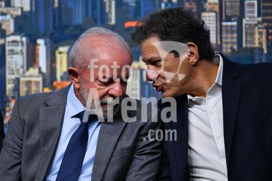 2820850 O Presidente da República, Luiz Inácio Lula da Silva (PT), participa da cerimônia de anúncio do novo modelo de crédito imobiliário, nesta sexta feira (10), no Centro de Convenções Rebouças, em São Paulo. Na foto Luiz Inácio Lula da Silva (PT), Presidente da República , (E) e Fernando Haddad (PT), Ministro da Fazenda (D).
