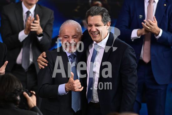 2848819 Foto, Presidente Lula e Ministro Fernando Haddad. Nesta quarta (26) o Presidente Lula participa no Palácio do Planalto da Cerimônia de sanção do Projeto de Lei nº 1.087, de 2025, que amplia a faixa de isenção e institui a tributação mínima do Imposto de Renda.