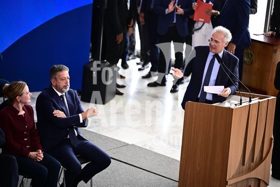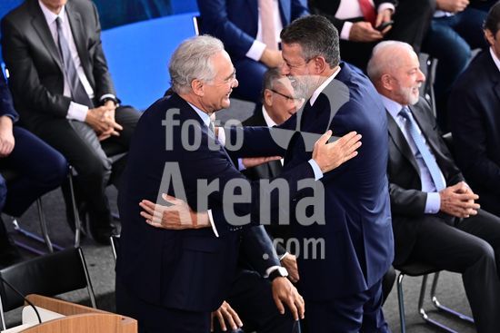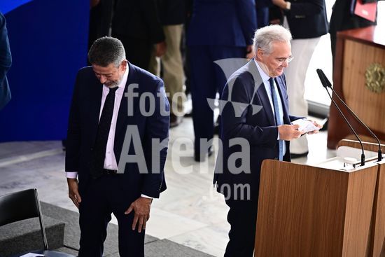 2848822 Foto, Senador Renan Calheiros cumprimenta Deputado Arthur Lira. Nesta quarta (26) o Presidente Lula participa no Palácio do Planalto da Cerimônia de sanção do Projeto de Lei nº 1.087, de 2025, que amplia a faixa de isenção e institui a tributação mínima do Imposto de Renda.
