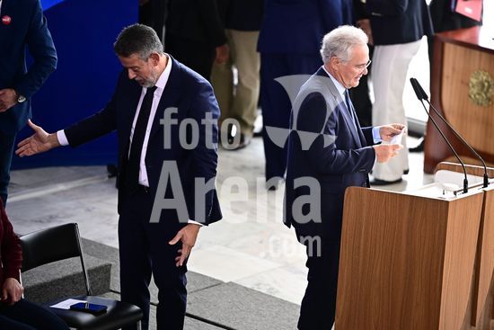 2848801 Foto, Ministro Guilherme Boulos e Sidônio Palmeira. Nesta quarta (26) o Presidente Lula participa no Palácio do Planalto da Cerimônia de sanção do Projeto de Lei nº 1.087, de 2025, que amplia a faixa de isenção e institui a tributação mínima do Imposto de Renda.