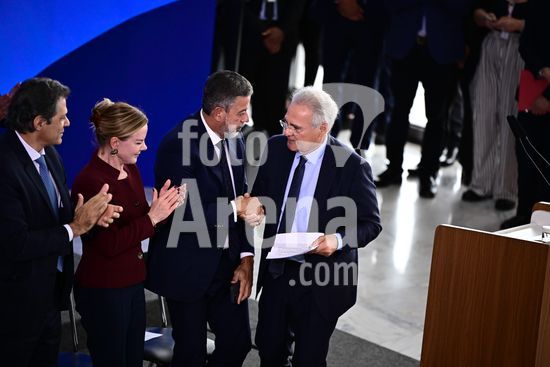2848765 Foto, Presidente Lula e Deputado Arthur Lira. Nesta quarta (26) o Presidente Lula participa no Palácio do Planalto da Cerimônia de sanção do Projeto de Lei nº 1.087, de 2025, que amplia a faixa de isenção e institui a tributação mínima do Imposto de Renda.
