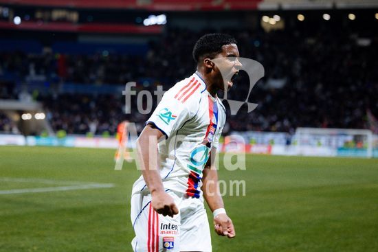 2879517 Enrick, do Olympique Lyonnais, comemora apos marcar o primeiro gol de seu time durante as oitavas de final do jogo da Coupe de France entre Olympique Lyonnais e Stade lavallois Mayenne Football Club no Groupama Stadium em Lyon, Franca. (Pauline FIGUET / SPP)