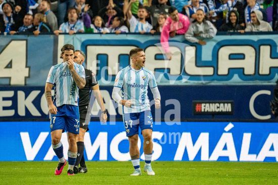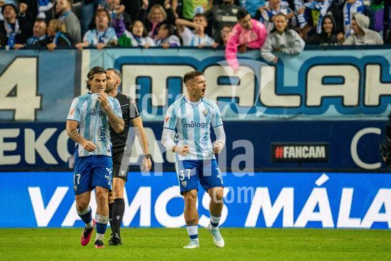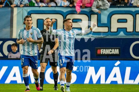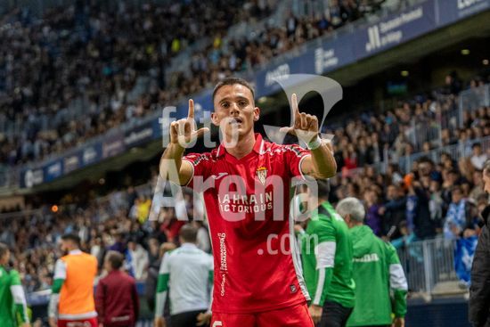 2838845 Rafa Rodriguez (N37) comemora um gol durante a partida La Liga Hypermotion entre Malaga CF e Cordoba CF no Estadio de la Rosaleda em Malaga, Espanha (Andres Lopez Sheridan / SPP)