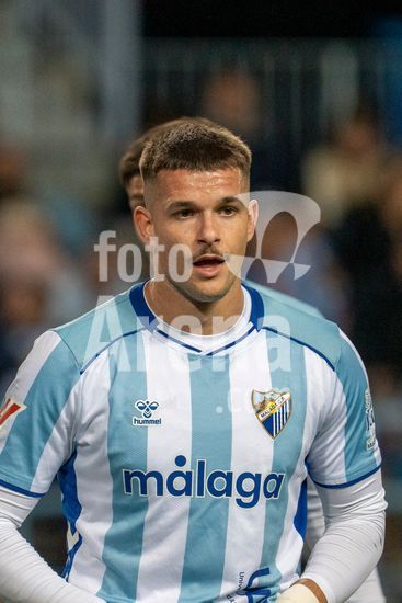 2838833 Eneko Jauregui (N17) antes do inicio da partida La Liga Hypermotion entre Malaga CF e Cordoba CF no Estadio de la Rosaleda em Malaga, Espanha (Andres Lopez Sheridan / SPP)