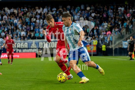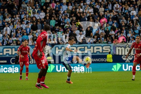 2838873 Requena (N30) com a bola durante a partida da La Liga Hypermotion entre Malaga CF e Cordoba CF no Estadio de la Rosaleda em Malaga, Espanha. (Andres Lopez Sheridan / SPP)