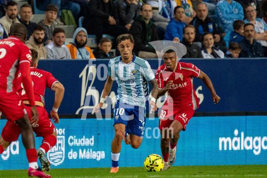 2838877 David Larrubia (N10) controla a bola durante a partida La Liga Hypermotion entre Malaga CF e Cordoba CF no Estadio de la Rosaleda em Malaga, Espanha (Andres Lopez Sheridan / SPP)
