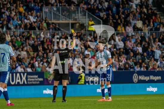 2838861 Arbitro Manuel Jesus Orellana Cid, cartao amarelo para Carlos Dotor (N12) durante a partida La Liga Hypermotion entre Malaga CF e Cordoba CF no Estadio de la Rosaleda em Malaga, Espanha (Andres Lopez Sheridan / SPP)