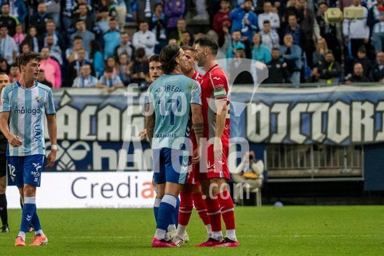 2838862 Eneko Jauregui (N17) e Carlos Munoz (N22) frente a frente, durante a partida La Liga Hypermotion entre Malaga CF e Cordoba CF no Estadio de la Rosaleda em Malaga, Espanha (Andres Lopez Sheridan / SPP)