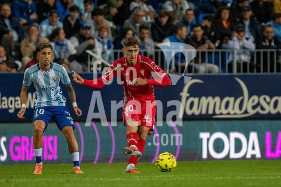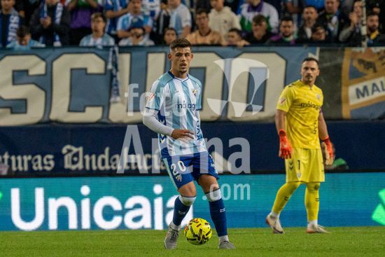 2838874 Javi Montero (N20) com a bola durante a partida da La Liga Hypermotion entre Malaga CF e Cordoba CF no Estadio de la Rosaleda em Malaga, Espanha. (Andres Lopez Sheridan / SPP)
