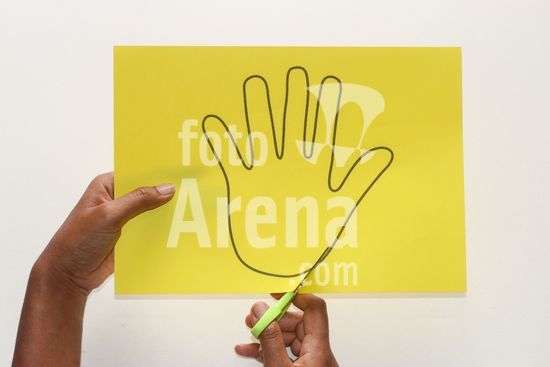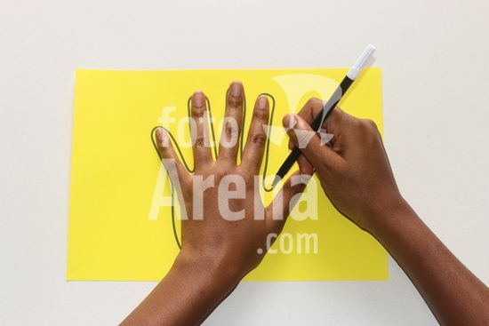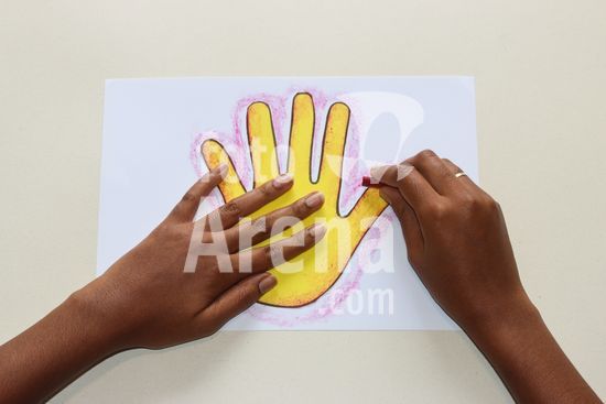 2902753 Mão marcada com caneta e sombreada de giz de cera.
