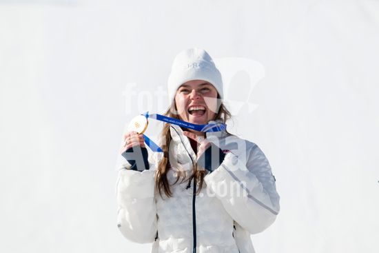 ny080226153212 Breezy Johnson of the United States reacts on the podium after winning gold in the women?s downhill during the 2026 Milan Cortina Winter Olympics in Cortina d?Ampezzo, Italy, Feb. 8, 2026. It was supposed to be a day for the American superstar Lindsey Vonn?s against-the odds comeback, but her teammate Breezy Johnson put up a fast time early and held on for the gold medal in the women?s downhill after Vonn crashed spectacularly and was airlifted off the mountain. (James Hill/The New York Times/Fotoarena)