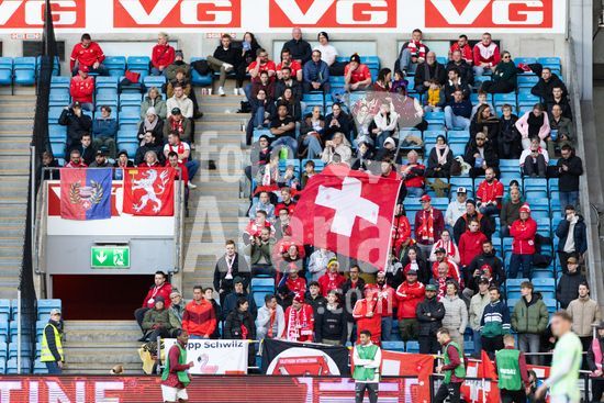 2915809 OSLO, NORUEGA - 31 DE MARCO: Torcedores da Suica assistem ao amistoso internacional entre Noruega e Suica no Estadio Ullevaal, em 31 de marco de 2026, em Oslo, Noruega. (Ane Frosaker/SPP)