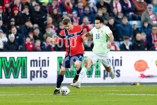 2915830 OSLO, NORUEGA - 31 DE MARCO: Alexander Sorloth, da Noruega, e Eray Comert, da Suica, disputam a bola durante o amistoso internacional entre Noruega e Suica no Estadio Ullevaal, em 31 de marco de 2026, em Oslo, Noruega. (Ane Frosaker/SPP)