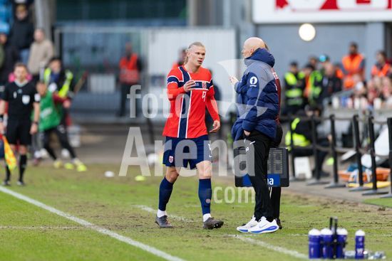 2915861 OSLO, NORUEGA - 31 DE MARCO: Erling Braut Haaland, da Noruega, e o tecnico da selecao norueguesa, Staale Solbakken, durante o amistoso internacional entre Noruega e Suica, no Estadio Ullevaal, em 31 de marco de 2026, em Oslo, Noruega. (Ane Frosaker/SPP)
