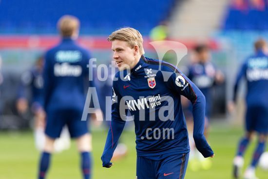 2915810 OSLO, NORUEGA - 31 DE MARCO: Patrick Berg, da Noruega, durante o aquecimento antes do amistoso internacional entre Noruega e Suica, no Estadio Ullevaal, em 31 de marco de 2026, em Oslo, Noruega. (Ane Frosaker/SPP)