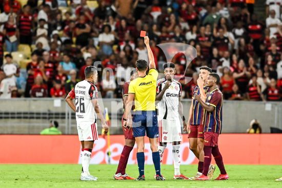 2896784 Jogadores de Madureira e Flamengo disputam a bola em partida no Estádio do Maracanã, no Rio de Janeiro (RJ), na noite desta segunda-feira (2), pela semifinal do Campeonato Carioca 2026.Filipe Luis