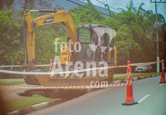 2860578 Fortes chuvas durante a noite e madrugada do dia 16 de dezembro em Ilhabela, SP, causaram estrago material em vários bairros da cidade, deixaram 120 pessoas desabrigadas e causaram a morte de dois idosos. Fotos feitas na tarde do dia 18 de dezembro, mostrando o gramado do campo do galera, no bairro da Água Branca, ainda enlameado.