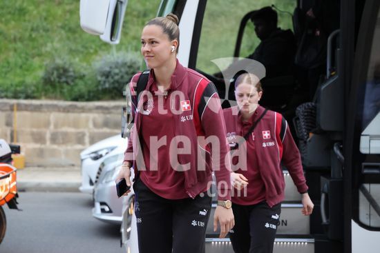 2902777 07.03.2026; Ta' Qali, Futebol - Eliminatorias Europeias Femininas da UEFA - Malta x Suica: Jogadoras da Suica chegam ao local da partida. (Domenic Aquilina / SPP)