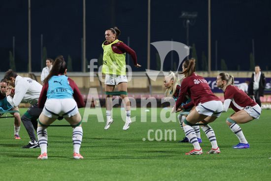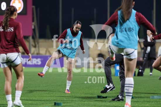 2902821 07.03.2026; Ta' Qali, Fussball - Qualificacao Europeia Feminina da UEFA - Malta vs Schweiz: jogadoras suicas durante o aquecimento (Domenic Aquilina / SPP)