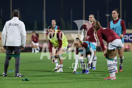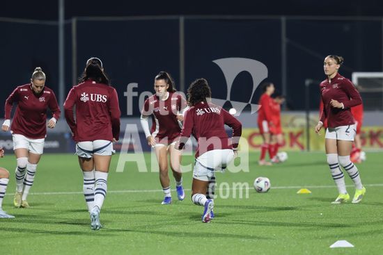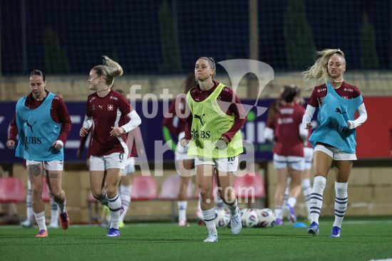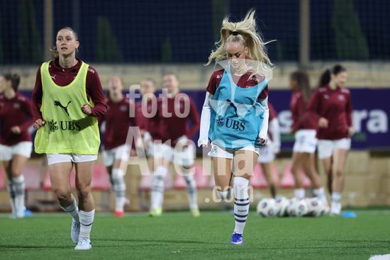 2902828 07.03.2026; Ta' Qali, Fussball - Qualificacao Europeia Feminina da UEFA - Malta vs Schweiz: jogadoras suicas durante o aquecimento (Domenic Aquilina / SPP)