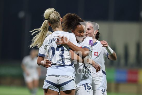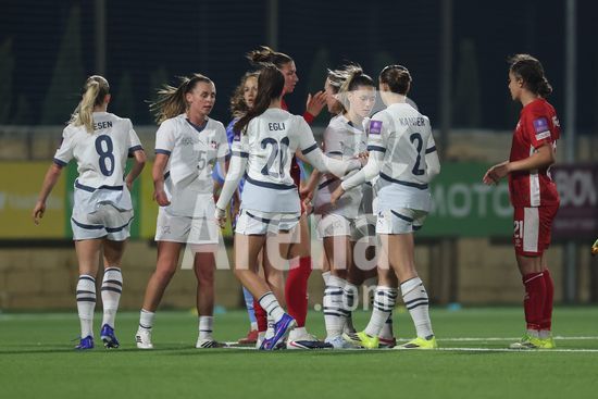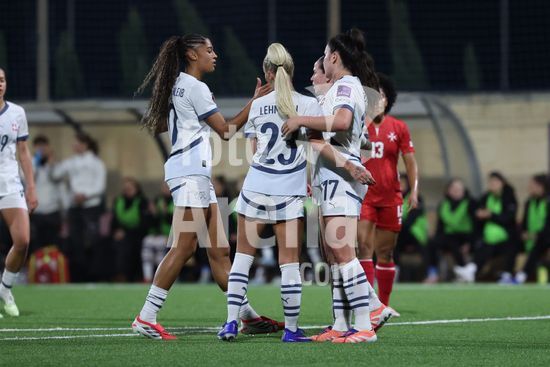 2902861 07.03.2026; Ta' Qali, Fussball - Qualificacao Europeia Feminina da UEFA - Malta vs Schweiz: Jogadoras suicas comemoram o gol de 0-1. (Domenic Aquilina/SPP)