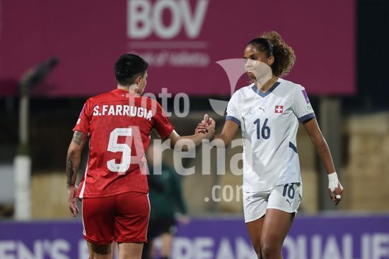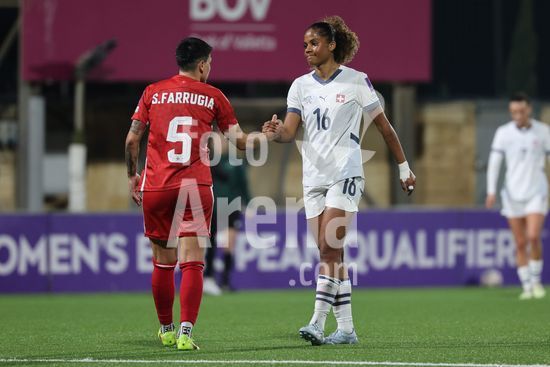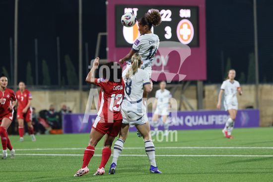2902886 07.03.2026; Ta' Qali, Fussball - Qualificacao Europeia Feminina da UEFA - Malta vs Schweiz: Ana-Maria Crnogorcevic (SUI) - Rafel Navarro (SUI) (Domenic Aquilina / SPP)