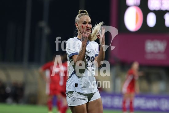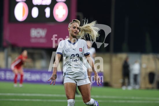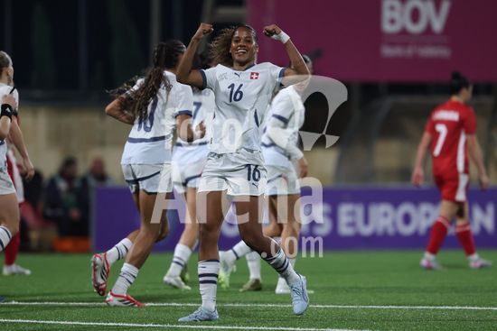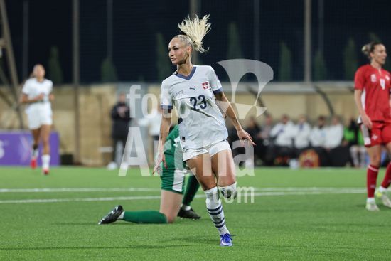2902874 07.03.2026; Ta' Qali, Fussball - Qualificacao Europeia Feminina da UEFA - Malta vs Schweiz: jogadora suica comemora - 1-3 (Domenic Aquilina / SPP)