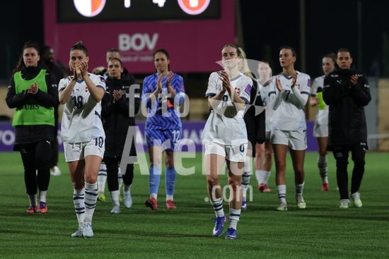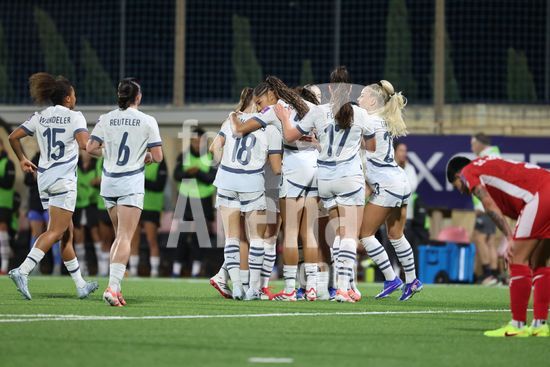 2902904 07.03.2026; Ta' Qali, Futebol - Eliminatorias Europeias Femininas da UEFA - Malta x Suica: Jogadoras suicas se reunem apos a partida (Domenic Aquilina / SPP)