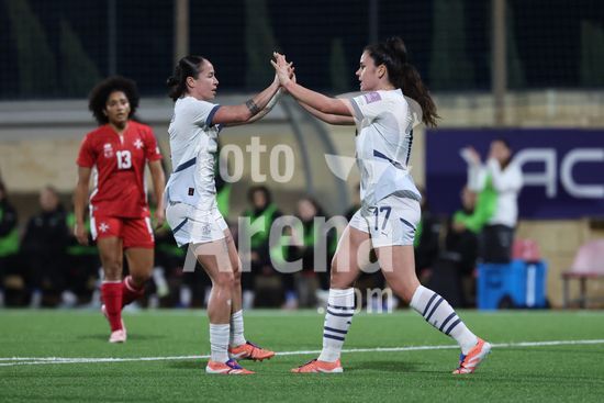 2902891 07.03.2026; Ta' Qali, Fussball - Qualificacao Europeia Feminina da UEFA - Malta vs Schweiz: Nadine Riesen (SUI) - Aurelie Csillag (SUI) - 1-4 (Domenic Aquilina / SPP)