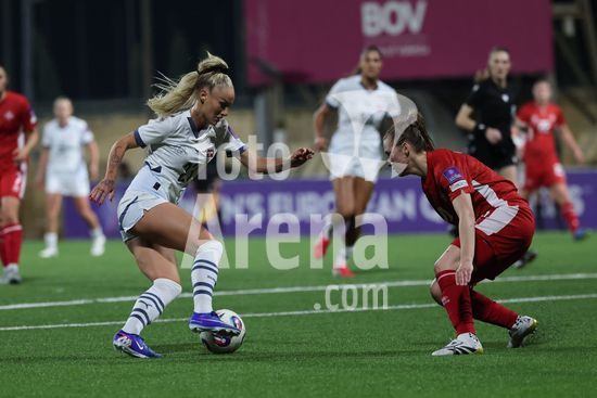 2902840 07.03.2026; Ta' Qali, Fussball - Qualificacao Europeia Feminina da UEFA - Malta vs Schweiz: Leila Wandeler (SUI) - Jade Flash (MLT) (Domenic Aquilina / SPP)