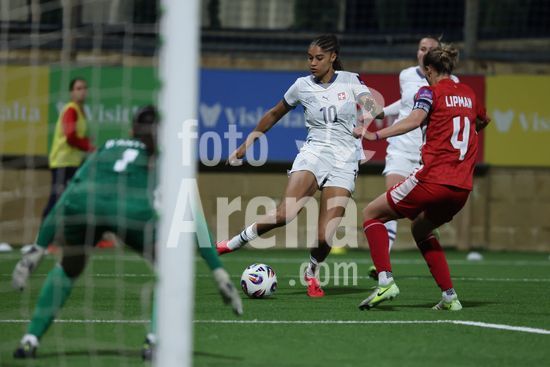2902855 07.03.2026; Ta' Qali, Fussball - Qualificacao Europeia Feminina da UEFA - Malta vs Schweiz: Nadine Riesen (SUI) - Iman Beney (SUI) - 0-1 (Domenic Aquilina / SPP)