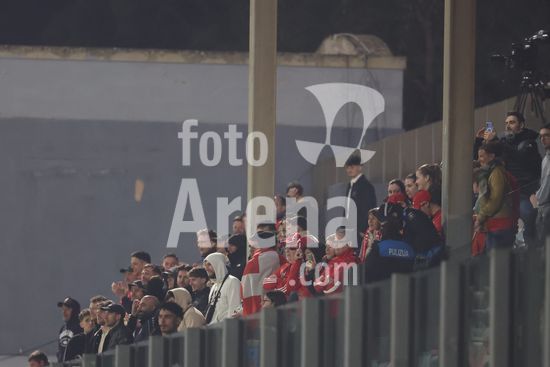 2902902 07.03.2026; Ta' Qali, Fussball - Qualificacao Europeia Feminina da UEFA - Malta vs Schweiz: torcedores suicos (Domenic Aquilina / SPP)