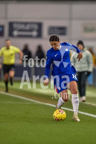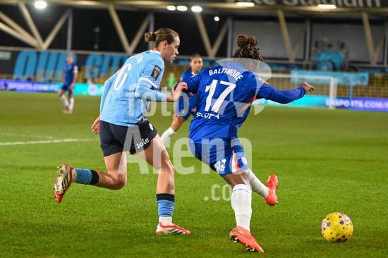 2871529 Sandy Baltimore (17 Chelsea) em acao durante a partida semifinal da Copa da Liga Feminina do Subway entre Manchester City e Chelsea no Estadio Joie em Manchester, Inglaterra. (Natalie Mincher/SPP)