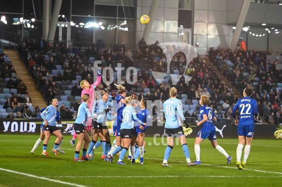 2871520 Kerstin Casparij (18 Manchester City) cruza a bola durante a partida semifinal da Copa da Liga Feminina Subway entre Manchester City e Chelsea no Estadio Joie em Manchester, Inglaterra. (Natalie Mincher/SPP)