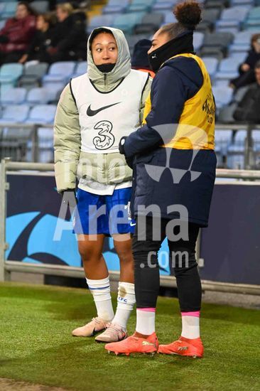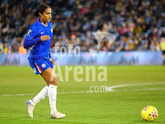 2871523 Naomi Girma (16 Chelsea) com a bola durante a partida semifinal da Copa da Liga Feminina Subway entre Manchester City e Chelsea no Estadio Joie em Manchester, Inglaterra. (Natalie Mincher/SPP)
