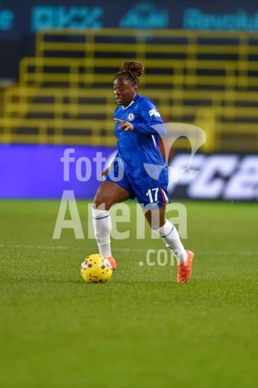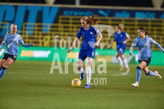 2871533 Sjoeke Nusken (6 Chelsea) com a bola durante a partida semifinal da Copa da Liga Feminina Subway entre Manchester City e Chelsea no Estadio Joie em Manchester, Inglaterra. (Natalie Mincher/SPP)