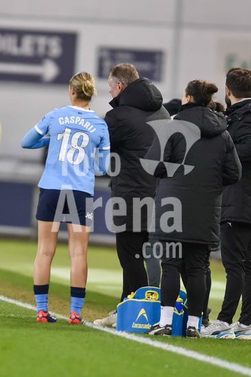 2871548 Grace Clinton (6 Manchester City) deixa o campo apos ser substituida durante a partida da semifinal da Copa da Liga Feminina Subway entre Manchester City e Chelsea no Estadio Joie em Manchester, Inglaterra. (Natalie Mincher/SPP)