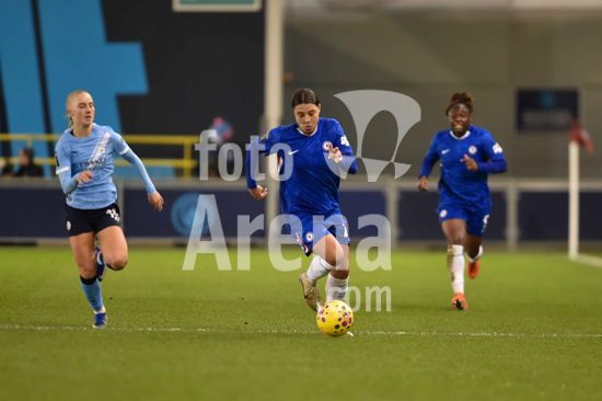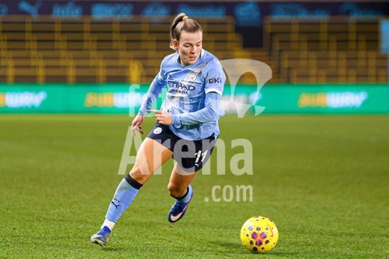 2871541 Lauren Hemp (11 Manchester City) com a bola durante a partida semifinal da Copa da Liga Feminina Subway entre Manchester City e Chelsea no Estadio Joie em Manchester, Inglaterra. (Natalie Mincher/SPP)