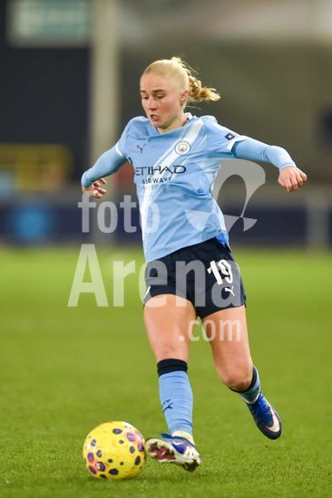 2871526 Kerstin Casparij (18 Manchester City) com a bola durante a partida semifinal da Copa da Liga Feminina Subway entre Manchester City e Chelsea no Estadio Joie em Manchester, Inglaterra. (Natalie Mincher/SPP)