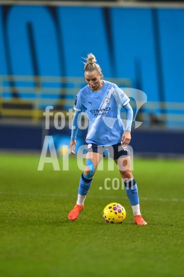 2871521 Grace Clinton (6 Manchester City) com a bola durante a partida semifinal da Copa da Liga Feminina Subway entre Manchester City e Chelsea no Estadio Joie em Manchester, Inglaterra. (Natalie Mincher/SPP)