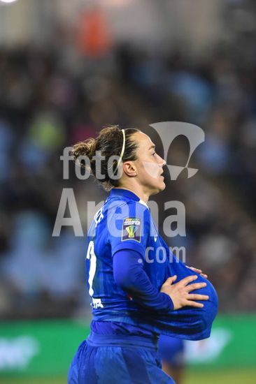 2871522 Kerstin Casparij (18 Manchester City) se prepara para cobrar um arremesso lateral durante a partida semifinal da Copa da Liga Feminina Subway entre Manchester City e Chelsea no Estadio Joie em Manchester, Inglaterra. (Natalie Mincher/SPP)