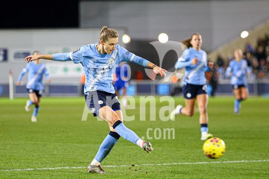 2871513 Vivianne Miedema (10 Manchester City) chuta a gol durante a partida semifinal da Copa da Liga Feminina Subway entre Manchester City e Chelsea no Estadio Joie em Manchester, Inglaterra. (Natalie Mincher/SPP)