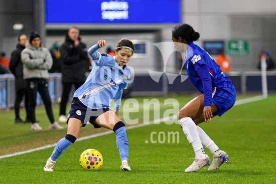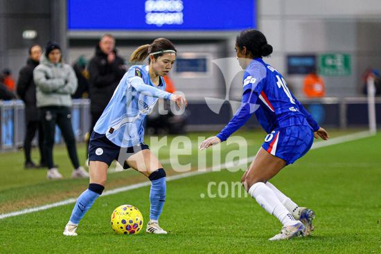 2871534 Yui Hasegawa (25, Manchester City) com a bola durante a partida semifinal da Copa da Liga Feminina do Subway entre Manchester City e Chelsea no Estadio Joie em Manchester, Inglaterra. (Natalie Mincher/SPP)