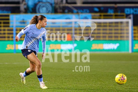 2871516 Khadija Bunny Shaw (9 Manchester City) com a bola durante a partida semifinal da Copa da Liga Feminina Subway entre Manchester City e Chelsea no Estadio Joie em Manchester, Inglaterra. (Natalie Mincher/SPP)
