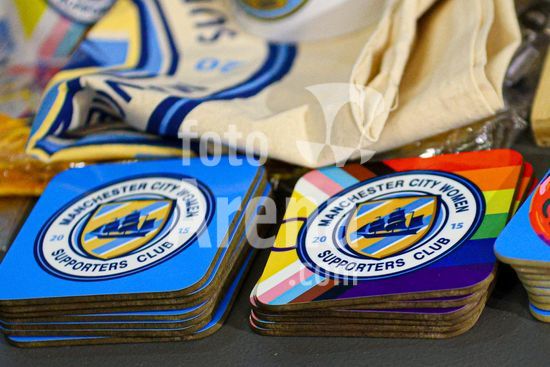 2871636 Mesa de produtos oficiais do Manchester City no OSC durante a partida semifinal da Copa da Liga Feminina do Subway entre Manchester City e Chelsea no Estadio Joie em Manchester, Inglaterra. (Natalie Mincher/SPP)